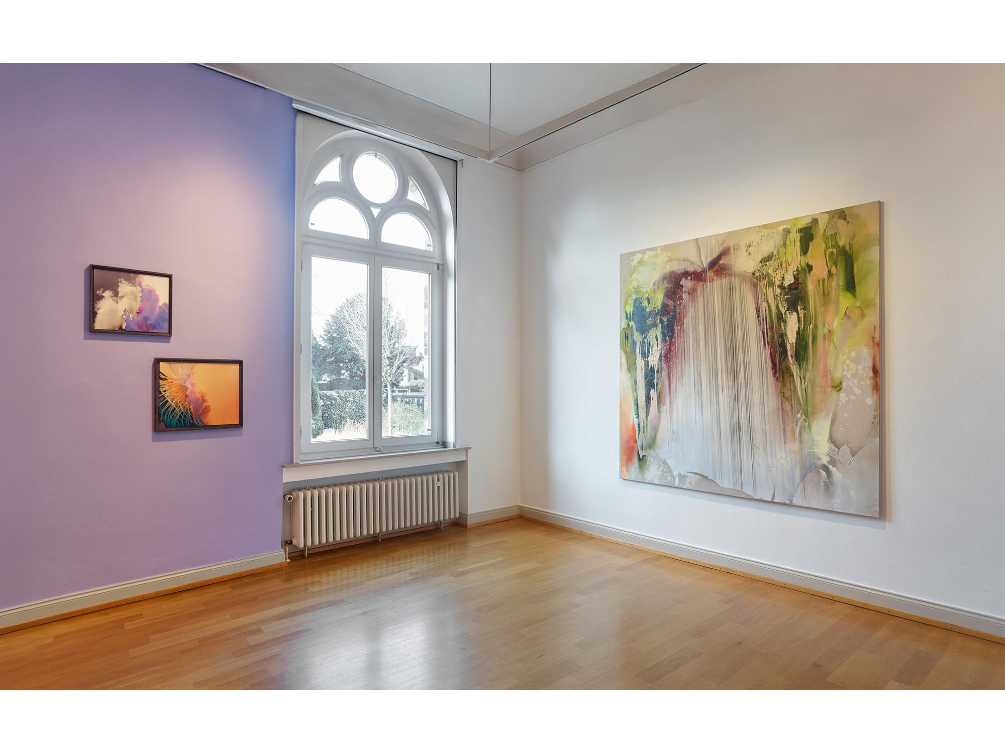 Angelika J. Trojnarski zeigt hingegen keine Landschaften, sondern erschafft Bilder, in denen die elementaren Kräfte der Natur durch Farbe, Form, Materialität und Oberflächenbeschaffenheiten anschaulich werden. Das Rauschen eines herabstürzenden Wasserfalls, sein brodelndes Aufschäumen am Boden, die Kühle des umgebenden Gesteins und der Geruch der saftig-grünen Vegetation – solche sinnlichen Eindrücke übersetzt die Künstlerin mit verschiedenen malerischen Techniken des Farbauftrags, des Kratzens, Schneidens, Bleichens oder Sprayens in eine eigenständige Bildwirklichkeit.