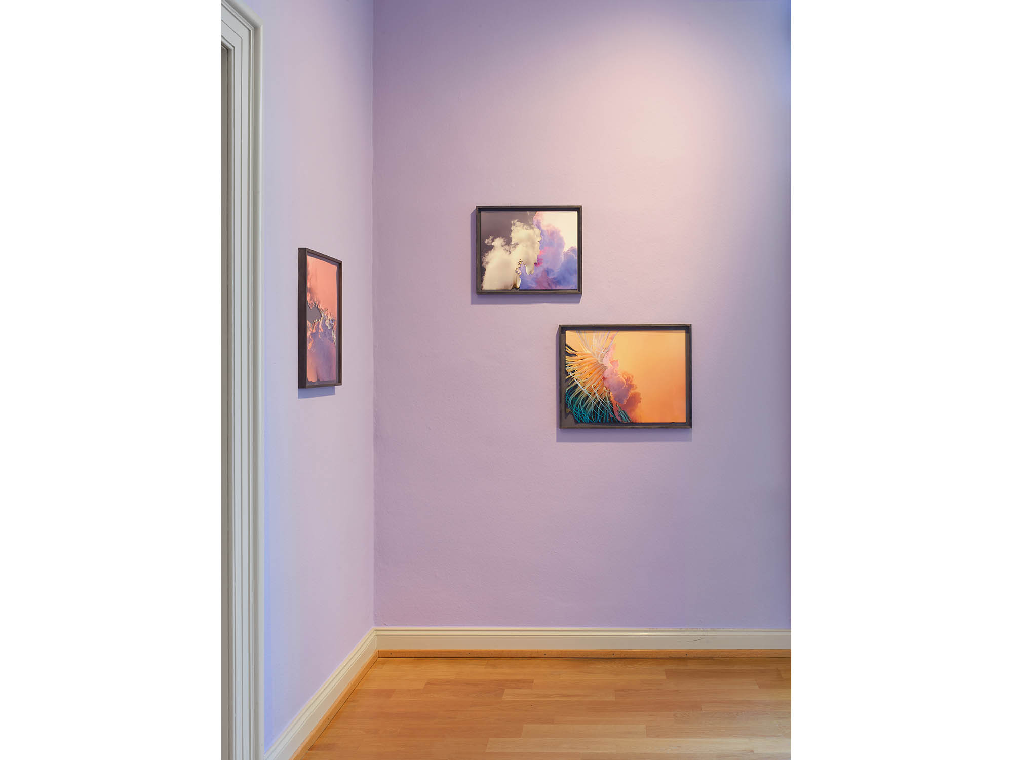 In ihren Fotocollagen verschwimmen Größendimensionen, vertauschen sich oben und unten, stoßen verschiedene Aggregatzustände oder Texturen nahtlos aneinander – bis die Frage nach dem eigentlichen Bildmotiv nahezu unerheblich wird. Der Titel der Werkreihe Pyrozän bezieht sich auf den vor einigen Jahren eingeführten wissenschaftlichen Begriff, der deutlich macht, dass durch den Klimawandel ein neues, von zunehmender Hitze und unkontrollierbaren Wald- und Flächenbränden geprägtes Zeitalter begonnen hat.
